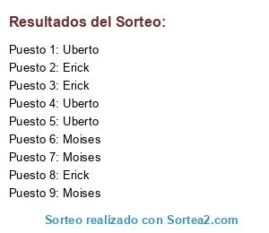 Lista de participantes: Moises, Moises, Moises, Uberto, Uberto, Uberto, Erick, Erick, Erick.