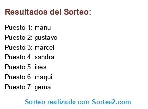Lista de participantes: sandra (2 participaciones), ines, maqui, gustavo, manu(4 participaciones), marcel, gema.