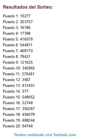 Resultados del sorteo: