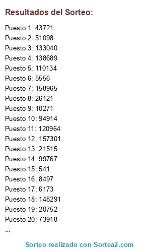 Resultados del sorteo:
