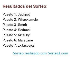 Lista de participantes: RileyReid(4), Sedrack(4), Whackamole(4), Smeb(4), Akizuky(4), Jackpot(3), MaryJane(2), zxAgataxz(1), zxJaspexz(1), ShizusLocx(1), Kaneki(1).