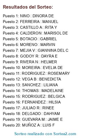 Resultados del sorteo:
