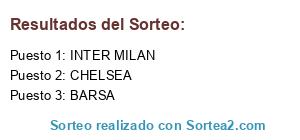 Lista de participantes: BARSA, CHELSEA, INTER MILAN.