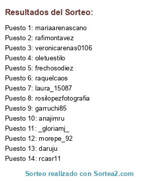 Lista de participantes: veronicarenas0106, morepe_92, anajimru, rafimontavez, daruju, laura_15087, oletuestilo, rosilopezfotografia, raquelcaos, rcasr11, garruchi85, frechosodiez, _gloriamj_, mariaarenascano.