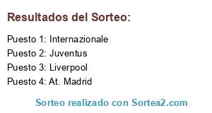 Lista de participantes: Internazionale, At. Madrid, Liverpool, Juventus.