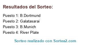 Lista de participantes: B.Munich, River Plate, Galatasarai.