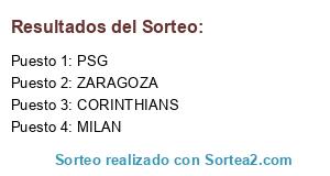 Lista de participantes: CORINTHIANS, MILAN, PSG, ZARAGOZA.
