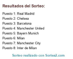 Lista de participantes: Real Madrid, Barcelona, Chelsea, Manchester City, Manchester United, Inter de Milan, Milan, Bayern Munich.