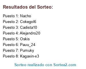Lista de participantes: Pauu_24, Cadista10, Alejandro20, Oskis, Nacho, Cokegol6, Kagaxin-x3, Pumuky.