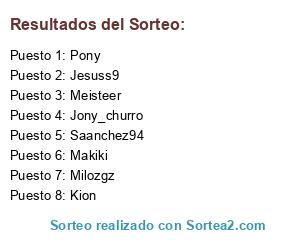 Lista de participantes: Jesuss9, Jony_churro, Meisteer, Saanchez94, Pony, Milozgz, Makiki, Kion.