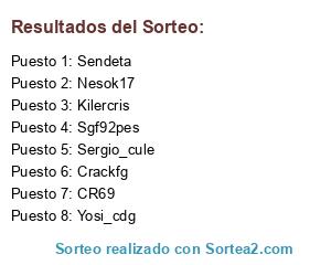 Lista de participantes: CR69, Sgf92pes, Nesok17, Yosi_cdg, Sendeta, Crackfg, Kilercris, Sergio_cule.