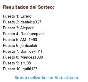 Lista de participantes: Alepere, Errero, jordicule5, Raulbanqueri, Mendez1038, Samioski YT, gufiti123, situ08, danielcp327, AML1990.