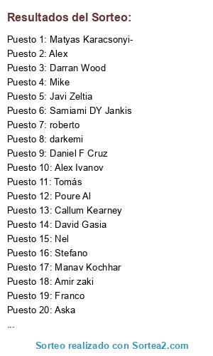 Lista de participantes: Adil, Adrian Fernandez Salas(4 participaciones), Adrien BOUTTIER(3 participaciones), Alan(2 participaciones), Alberto(2 participaciones), Alejandro(3 participaciones), Alejandro Macías(2 participaciones), Alejandro Masferrer(2 participaciones), Alex(3 participaciones), Alex Ivanov (2 participaciones), Alvaro(3 participaciones), Amir Salihefendic(3 participaciones), Amir zaki (3 participaciones), Andreas Calabrese(4 participaciones), Andrew Ostrenko(6 participaciones), Angel(4 participaciones), Angelo Bratta, angelramos, Anni Arias, Antonio Melgar(2 participaciones), Aska(4 participaciones), Ben Frederik(3 participaciones), Benny(3 participaciones), Benoit de Montaigu(3 participaciones), Bernardo Silva, Brian, Caio Lacerda(3 participaciones), Callum Kearney, Candela Ghelfi, Carlos(4 participaciones), Charlie, Col(5 participaciones), Costel Ivan(2 participaciones), Dani-user192537089, Dani-user205119888, Daniel d, Daniel F Cruz(4 participaciones), Daniel Hareg, Dario Pereira, darkemi, Darran Wood(9 participaciones), David Gasia, Davide Cariani(3 participaciones), Derin Agbede, Dmitry Slavin(6 participaciones), Eddy Favela, Eduardo, Elias Nuevo(3 participaciones), Emma(2 participaciones), Esteban Martínez(3 participaciones), Federico(3 participaciones), Felipe Arellano(4 participaciones), Fernando D. Palacios(3 participaciones), Fernando Peña(2 participaciones), flor(2 participaciones), Fran, Franco(9 participaciones), Gak Bass, Golovin Dmitry, Harold Verbel Ramirez(3 participaciones), Havi MacCallas(4 participaciones), Héctor (5 participaciones), Idafe Fernández Lorenzo, Ignacio SM(3 participaciones), Ismail Serroukh(2 participaciones), Ivan Bachinsky, Ivan Guisado Huertas(4 participaciones), Jas(2 participaciones), Jason Cuellar, Javi Zeltia(8 participaciones), Javier, Javier Paez Barberan(4 participaciones), Jesús Miguel Sánchez Casaús(3 participaciones), Jesús Rufas(3 participaciones), Joel Vall Thomas(4 participaciones), Jordi B(3 participaciones), Jordi Casellas Estrada(5 participaciones), Jorge Bravo Pratscher, Jorge Campillo Paulick, Jorgelina(3 participaciones), Jose Antonio Barceló(2 participaciones), Josep Soldevila, Julián CR(2 participaciones), Kim Blond, Kimi(2 participaciones), Laurent Cb, Lluc Berga Espart, Manav Kochhar(9 participaciones), Manu, Marco Chiacchiaretta, Mario Crehuet(3 participaciones), Mateusz W., Matyas Karacsonyi-(9 participaciones), Maxim Vanhenden(2 participaciones), Mazza Gianfranco(2 participaciones), Micaela Gerje, Michael Bettoumi, Mike(12 participaciones), MIKI 🐭(7 participaciones), Myles P(5 participaciones), Nacho(5 participaciones), Nawaf Bin Mansour(12 participaciones), Nel, Nick Chapman, Nico Lacuesta(2 participaciones), Oskirr, Pau Llopis Vidrier, Paul(4 participaciones), Paul Paredes Naranjo(4 participaciones), Pedro Henrique Perri(2 participaciones), Poure Al(3 participaciones), Rad(6 participaciones), Rafa SP(2 participaciones), Richard, Robby Gomez(3 participaciones), Robert(2 participaciones), Robert D(4 participaciones), Robert W.(2 participaciones), roberto(3 participaciones), Robin(2 participaciones), Robin Aitken(6 participaciones), Rohit SJ, Roi Ankori-Karlinsky(3 participaciones), Rubén FC, Samiami DY Jankis(2 participaciones), Sebastián Abalde(5 participaciones), Segundo, Sergi(3 participaciones), sergio merino(2 participaciones), simone mattei(2 participaciones), Stefano(4 participaciones), Tadeu Ferreira, Thibault, Tomás(4 participaciones), tomas pereira, Valle(2 participaciones), Viktoria Piirainen, Willem Lijnders(2 participaciones), Yan Maurakh(3 participaciones), 清水一慶(2 participaciones).