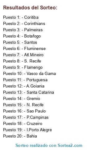Lista de participantes: - A.Goiania, - Atl.Mineiro, - Bahia, - Botafogo, - Corinthians, - Coritiba, - Cruzeiro, - Flamengo, - Fluminense, - Gremio, - I.Porto Alegre, - N. Recife, - P.Campinas, - Palmeiras, - Portuguesa, - S. Recife, - Santa Catarina, - Santos, - Sao Paulo, - Vasco da Gama.