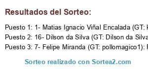 Lista de participantes: 2- German Cantillana Gomez (GT: eLManh): Cruzeiro, 9- Tatan Riquelme Alvarado (GT: Tatan Rivarola7): Atl. Mineiro, 11- Marcelo Villanueva (GT: Chelorap): Santa Catarina, 16- Dilson da Silva (GT: Dilson da Silva): N. Recife, 20- Mauricio O. Figueroa Barros (GT: Azrael Luther): A. Goiana, 23- Sebastian Alejandro (GT: cf | Alexis 9): Corinthians, 24- Nicolas Andres (GT: nikinho10): Boca Jrs (ARG).