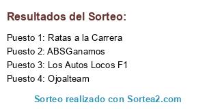 Lista de participantes: Los Autos Locos F1, Ratas a la Carrera, ABSGanamos, Ojoalteam.