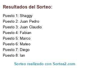 Resultados del sorteo: