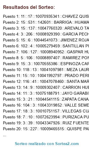 Resultados del sorteo: