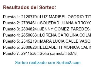Resultados del sorteo: