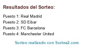Lista de participantes: Real Madrid, Manchester United, FC Barcelona, SD Eibar.