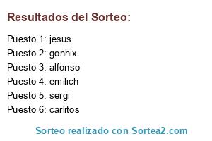 Lista de participantes: carlitos, emilich, gonhix, sergi, alfonso, jesus.