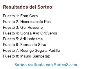 Lista de participantes: Mauro Sampetaz, Rodrigo Segura Padilla, Hiperpazosfc Pes, Arii Ledesma, Gonza Akd Ontiveros, Fernando Silva, Fran Carp, Gui Rossener.
