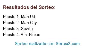 Lista de participantes: Man Ud, Man City, Sevilla, Ath. Bilbao.