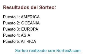 Lista de participantes: AFRICA, AMERICA, ASIA, EUROPA, OCEANIA.