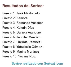 Resultados del sorteo: