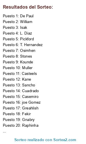 Lista de participantes: Casteels, Pickford, Cuadrado, Kounde, Stones, joe Gomez, T. Hernandez, Casemiro, De Paul, Fekir, Muller, Sancho, L. Diaz, Di Maria, Gnabry, Isak, Greahlish, Raphinha, L. Paqueta, Osimhen, William, Kane.