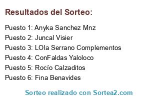 Lista de participantes: Pilar Gil Costa, Erika Montes Pérez, Ana Díez, ConFaldas Yaloloco, Cristina Soria Vilella, Carolina Roger Manzano, Macarena Soria, Sonia Torres Coca, Jennifer Bonilla Pizarro, Mara Vaño, Amaia Torres Sánchez, Patricia Goncalves Dos Santos, Isadora Mayandia, Vicente Sanz Muñor, Almudena Villalba, Chris Hana, Nuria Esteve, Inma Traver Llorens, Rocio Ruiz Rodriguez, Ana Marya Sanchez, Tania Romero, Sandra Martínez, Sandra Sabariego, Cristina Jurado, Maria Ortega Gomez, Söniâ Lm, Anyka Sanchez Mnz, Vanessa Maria, Pakyta Mendez Lopez, Marisa Cebrian Gomez, Araceli López Cañete, Cristina Ortola Tello, Luisa Menargues, Kapitana Corsaria Pirates, Charo Romero Álvarez, Veronica Gomez, Rosario GT, Carmen Contreras, Margarita Isern Gual, Núria Garcia, Carmen Garcia Magadán, Ana Glez, Cristinika Marquslu, Angeles Sánchez Sicilia, Nagore Arostegui Rojo, Blanca Rodríguez, Chary Vian, Sofia Esther Ruiz Garcia, Ana Belen García L, Concepción Matías Simarro, Veronica Sumillera, Miriam Moran Fernandez, LOla Serrano Complementos, Rocío Calzaditos, Beni Franqués, El Rincón de Disidra, Luisa Arencon Moya, Mariló Salmerón Fernández, Buscador de Sorteos, Irene Masip Morte, Pilar Castillo Porras, La casita de Alibea, Trecool Kawaii, M Carmen Prieto Magro, Gema Abad, Juncal Visier, Yessica Lloret Márquez, Fina Benavides, Ainodea Manualidades, Pepi Romero Alvarez, Luigi Chaparro Romero, Paz Crespo, Mami Duna Carolina, Rosa Maria Sierra Álvarez, Andrea Gomez, Lourdes Navarro, Merce Julián, Kamal Sev, Marta Rincón, Eleanor Ainur.