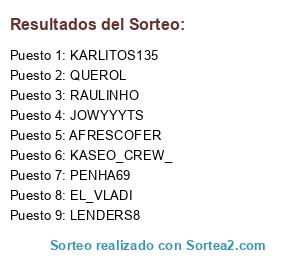 Lista de participantes: LENDERS8, KASEO_CREW_, PENHA69, QUEROL, JOWYYYTS, RAULINHO, KARLITOS135, AFRESCOFER, EL_VLADI.