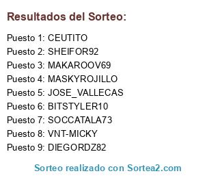Lista de participantes: DIEGORDZ82, SOCCATALA73, SHEIFOR92, JOSE_VALLECAS, MAKAROOV69, CEUTITO, BITSTYLER10, VNT-MICKY, MASKYROJILLO.