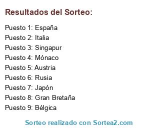 Lista de participantes: Rusia, España, Mónaco, Austria, Gran Bretaña, Bélgica, Italia, Singapur, Japón.