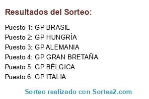 Lista de participantes: GP AUSTRIA, GP GRAN BRETAÑA, GP HUNGRÍA, GP ALEMANIA, GP BÉLGICA, GP ITALIA, GP MALASIA, GP JAPÓN, GP ESTADOS UNIDOS, GP MÉXICO, GP BRASIL, GP ABU DHABI.