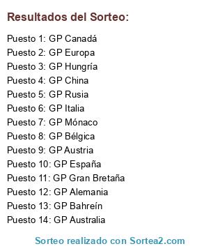 Lista de participantes: GP Australia, GP Bahreín, GP China, GP España, GP Mónaco, GP Canadá, GP Europa, GP Austria, GP Gran Bretaña, GP Hungría, GP Alemania, GP Bélgica, GP Italia, GP Rusia.