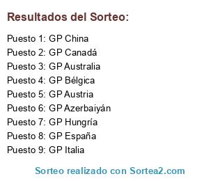 Lista de participantes: GP Australia, GP China, GP Azerbaiyán, GP España, GP Canadá, GP Austria, GP Hungría, GP Bélgica, GP Italia.