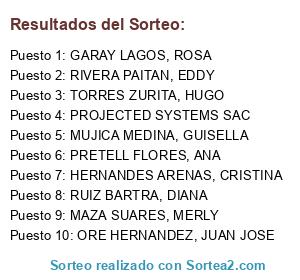 Lista de participantes: TERAN PALOMINO, YENY, FELIPA HERNANDEZ, VICTORIA, PASACHE CUNYA, WILMER, TORRES HIDALGO, SILVER, NARRO QUIÑONES, JUAN, ARIAS CUZCANO, ELIZABETH KARLA, RUIZ BARTRA, DIANA, SAAVEDRA CHAVEZ, POLO, FREYRE SALDAÑA, ZULEMA, GUEVARA TORO, HILDAURA HAYDEE, BAYLON OJEDA, MONICA, CARLOS ENRIQUE RODRIGUEZ QUISPE, BENITES TORRES, JHOVANA, SUAZO FERNANDEZ, CARMEN DEL PILAR, NOR BUILDING S.A.C., SANTOS GAMARRA, LUIS, CHUTON ZAMORA, YEING, CASTAÑEDA PAREDES, VANESA, RIVERA QUISPE, RUTH, BRAVO VILELA, GLORIA, MAZA SUARES, MERLY, RIVERA PAITAN, EDDY, CAMPOS ROQUE, CINTHIA, SOTO MONTOYA, ROMMY, MUJICA MEDINA, GUISELLA, MONTOYA LEYVA, ROSALINA ELVIRA, CANDELARIO CAMPOS, FLOR DE MARIA, HUARIPATA CULQUI, ROSARIO MARLENI, SUELDO MOLINA, WILGEN, GONSALEZ DAVILA, PILAR, CARRASCO MORANTE, KELLY, FIBRAS MARINAS S.A., ARANDA ROJAS DE SOLIER, AMALIA, GARAY LAGOS, ROSA, TORRES FARFAN, DALIDA, ARROYO RAMOS, HUGO, LOZADA TEZEN, CARLOS ENRIQUE, MEJIA PAREDES, JULIA DORIS, TERRONES MUÑANTE, BELIZA, ZAPATA LARA, VANESA, VICENTE MIRANDA, LAURA MADELEINE, SANTIN RAMOS, JHON, REGALADO RODRIGUES, IVAN, SILVESTRE RAMOS, BERTHA LUCIA, PROJECTED SYSTEMS SAC, DIAZ ORREGO, KAREM, YOVERA RUIZ, JOSE MANUEL, CORDOVA CASTILLA, ESTHER, VIGO VASQUEZ, VIOLETA, INMOBILIARIA E INVERSIONES V&W S.A.C., TRONCOS MERINO, SONIA, BARBARAN VENTA, YOVANA, GURMENDI ALZA, KATHERINE, BURGA MEDINA, JHONY, FALLA SEVERINO, VANESSA, VILLAR PALACIOS, MOLAGROS, ARGOMEDO ARMAS, GLORIA, REQUEJO VIDARTE, MARIA TERESA, GALVEZ SALAZAR, LILIANA, GUZMAN MONTALVO, SONIA DEL CARMEN ISA, CARRASCO VELA, CLAUDIA, DONAYRE GARCIA, ELIZABETH, FACTORI Y AUTOPARTES RAMSA E.I.R.L, ALCALDE VILLAR, IVETTE, FLORES CABALLERO, ARTURO, ALARCON VERGARA, TREYSI, CHAVARRY HUAMAN, EVA MARIA, ARROYO CHAFLOQUE, PATRICIA, VELEZ RAMOS, ROSA, ORE HERNANDEZ, JUAN JOSE, SALAZAR SANTUR, MARTIN, HERNANDES ARENAS, CRISTINA, MORALES ESTERRIPA, ROSSANA, UGAZ DOIG, KATHERINE, HURTADO VILA, ANGEL, PERALTA OTERO, MILAGROS, SANTA CRUZ ANCHATE, NOEMI, TORRES ZURITA, HUGO, OCHOA ESCOBAR, JESSICA, FLORES SUAREZ, WILDER DAVID, MELENDEZ PERALTA, JAVIER, DELA CRUZ ROMERO, ROSA, JURADO CAPANI, MAURO, ESTRELLA BENITES, VERONICA, SALAZAR FERNANDEZ, KENNY, VERA ARROYO, PAMELA KATIUSHKA, ROMAN CASTILLO, DOLORES, PRETELL FLORES, ANA, VIDALON CHOQUE, MIGUEL ANGEL, RAMIREZ DE LA CRUZ, ZAIDA, TIMANA YZAGA, ALEXANDER MARTEL, ALVEREZ PEREZ, VERONICA, MATOS BARZOLA, ROCIO, CAYO QUINTANILLA, ELIZABETH, VERDE OCAMPO, MICHAEL ANDERSON.