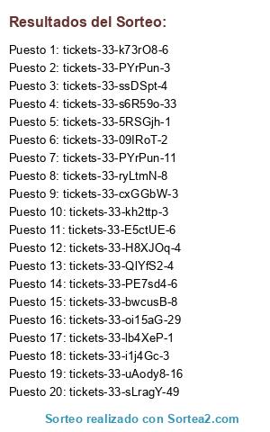 - Ganador 1 : tickets-33-k73rO8-6