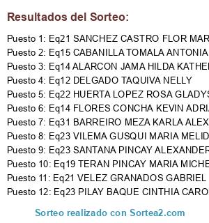 - Puesto 12: Eq21 ROMAN SALINAS CATALINA STEFANNY