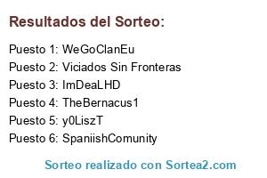 Lista de participantes: y0LiszT, Viciados Sin Fronteras, SpaniishComunity, WeGoClanEu, ImDeaLHD, TheBernacus1.