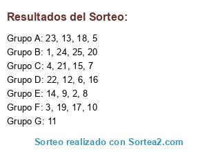 Resultados del sorteo: