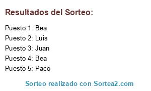 Lista de participantes: Bea, Bea, Paco, Juan, Luis.