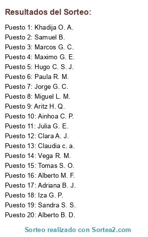 Resultados del sorteo: