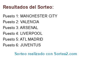 Lista de participantes: LIVERPOOL, JUVENTUS, ATL MADRID, ARSENAL, MANCHESTER CITY, VALENCIA.