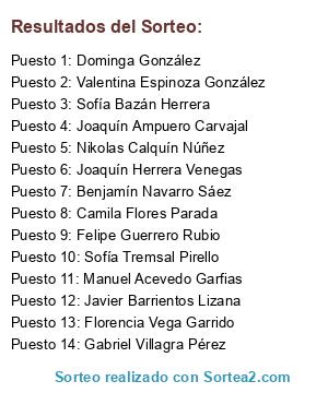 Lista de participantes: Manuel Acevedo Garfias, Joaquín Ampuero Carvajal, Javier Barrientos Lizana, Sofía Bazán Herrera, Nikolas Calquín Núñez, Valentina Espinoza González, Camila Flores Parada, Dominga González, Felipe Guerrero Rubio, Joaquín Herrera Venegas, Benjamín Navarro Sáez, Sofía Tremsal Pirello, Florencia Vega Garrido, Gabriel Villagra Pérez.
