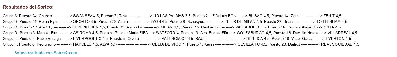Resultados del sorteo: