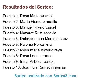 Lista de participantes: Miriam Ruiz, Marta Jimenez leal, Paloma Perez villar, Bienvenido Moreno nuñez, Laura Valverde, Maria angeles Cabrera hidalgo, Antonia Lopez, Manuel Rivero castel, Salvador Rodriguez galve, Maria Lourdes ruiz Ruiz segovia, Nazaret Ruiz segovia, Francisco Atenciano, Jose luis Gutierrez fernandez, Jose miguel Cenas martin, Jose manuel Fernandez, Rocio Lopez martin, Yolanda Ponce sotillos, Sofia Ponc, Jose antonio Reina podadera, Jose antonio Reina podadera, Chari Carmona carmona, Mari angeles Rodriguez fernandez, Javier Rodriguez martim, Raul Muñoz, Antonio Alcaide molina, Juan carlos Rodriguez rodriguez, Jordi Ásbeda roldan, Inma Ásbeda perez, Emilio Bautista acenjo, Rocio Soldan camuñez, Silvia honorato triguero, Marcos Lopera, Rafi Camarasalta navarro, Elia Dominguez palma, Jose Santiago nieto, Antonio Palacios baena, Francisco Segura reyes, Francisco Segura reyes, Erick Jimenez caparros, Luisa MARTIN rodriguez, Daniel Noguera gil, Rosa maria Victorio raya, Rosa maria Victorio raya, Laura Untado panesso, Francisco jose Ruiz adame, Francisco jose Ruiz adame, María José Rodriguez, Mercedes Rivas cabeza, Mercedes Rivas cabeza, Leticia Jimenez narvae, Mari angeles Fuente leon, Mari carmen Carmona moscazo, Estefania Murillo aroca, Estefania Murillo aroca, Marta Gomero morillo, Marta Gomero morillo, Francisco Cardenas dorado, Francisco Cardenas dorado, Felix Villar iguerra, Maria del valle Salazar lopez, Rafael Villanueva nuñez, Adela Robles martinez, Adela Robles martinez, Pedro javier Rodriguez ortiz, Pedro javier Rodriguez ortiz, Tamara Lira Sepulveda, Antonio Callejas lama, Jose antonio Tejada gamito, Mari carmen Gomez perez, Beatriz Marín lopez, Antonio Encinas garcia, Eloy Gomez vega, Rosa Mata palacio, Ana maria Rodriguez soler, Ana maria Rodriguez soler, Fina Lora galan, Fina Lora galan, Dolores maria Mora jimenez, Vanesa Ramirez molina, Jose luis Fernandez garzon, Carmen Medina rosado, Ana Palma alba, Jose dario Cordobés ruiz, Jose dario Cordobés ruiz, Mari carmen Agenciando moreno, Paqui Gutierrez ramirez, Manuel Siles carrizosa, Carmen Altillo blanco, Salvador Cortes garcia, Eva Prieto montero, Lorena Perez Rodrieguez, Antonio Porque perez, Antonio Porque perez, Miguel angel Gomez montero, María José Garcia torralbo, Mariabelen Rechi vega, Luis miguel Villar rodriguez, Raquel Sojo, Yolanda Bermudo wic, Francisco Trujillo perez, Mayte Mayte fernandez, Jose manuel Guerrero rodriguez, Juan luis Ramadín porras, Almudena Pastor pradas, Jose joaquin Fijo martin, Angela Perded diaz, Angela Perded diaz, Coral Trenas ortiz, Alberto Bonilla garcia, Mayca Fernandez rueda, Mayca Fernandez rueda, Jose ramon Palma lora, Silvio Emilio gonzalez, Rosa Leon serrano, Dolores Carmona martin, Pepi Pradas Rivero, Adrian Garcia bocero, Rosalia Vocero sanchez, Rosalia Vocero sanchez, Rocio Plaza borrego, Mari carmen Molina sierra, Adriana Garcia beneyto, Alejandro Sanz martin, Oscar Laguna diaz, Carmen Mengual gonzalez, Laura Aguilera duvison, Isa Romero martin, Jesica Rodriguez cabrera, Soraya Sanchez diaz, Antonio MARTINEZ lopez, Madelaine Polanco cano, Mari carmen Agenciando diaz, Cristina Garay marquez.