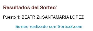 - Puesto 1: BEATRIZ SANTAMARIA LOPEZ