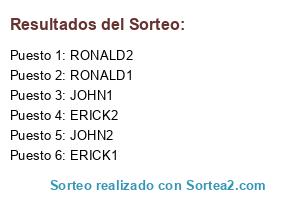 Lista de participantes: ERICK1, ERICK2, JOHN1, JOHN2, RONALD1, RONALD2.